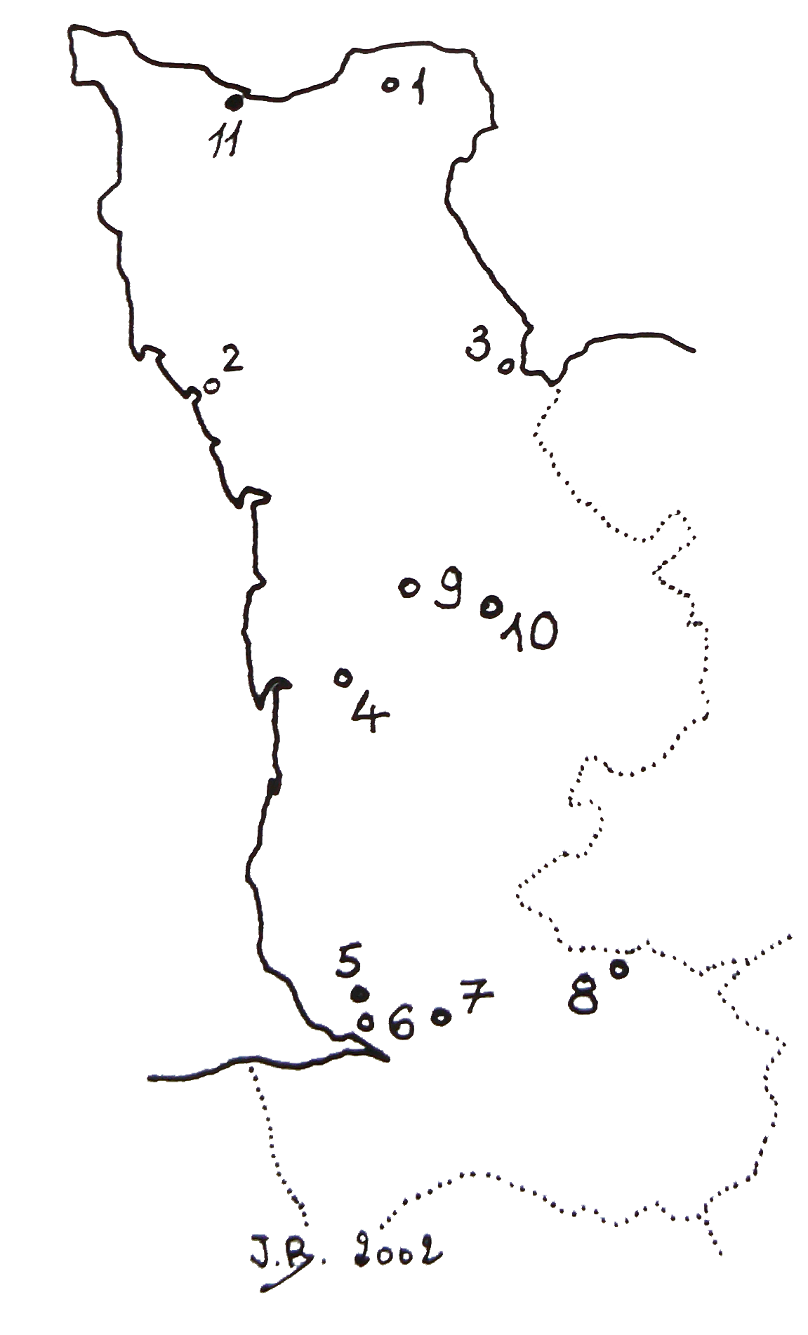 Cependant, nous avons recensé 11 lieux où le culte de Saint-Eutrope est attesté dans les anciens diocèses de Coutances et Avranches (voir Carte)   Saint-Pierre-Eglise (mention en 1740 d’une chapelle dans l’église paroissiale) ; Saint-Lô d’Ourville : chapelle du manoir du Parc ; Brucheville (fragment d’huile sur toile dans l’église paroissiale) ; Coutances (chapelle dans la cathédrale) ; Bacilly (chapelle de La Rousselière) ; Vains (statue dans l’église paroissiale) ; La Godefroy (confrérie au XVIIIe S.) ; Saint-Michel-de-Montjoie (Statue dans l’église paroissiale) ; Hauteville-la-Guichard.