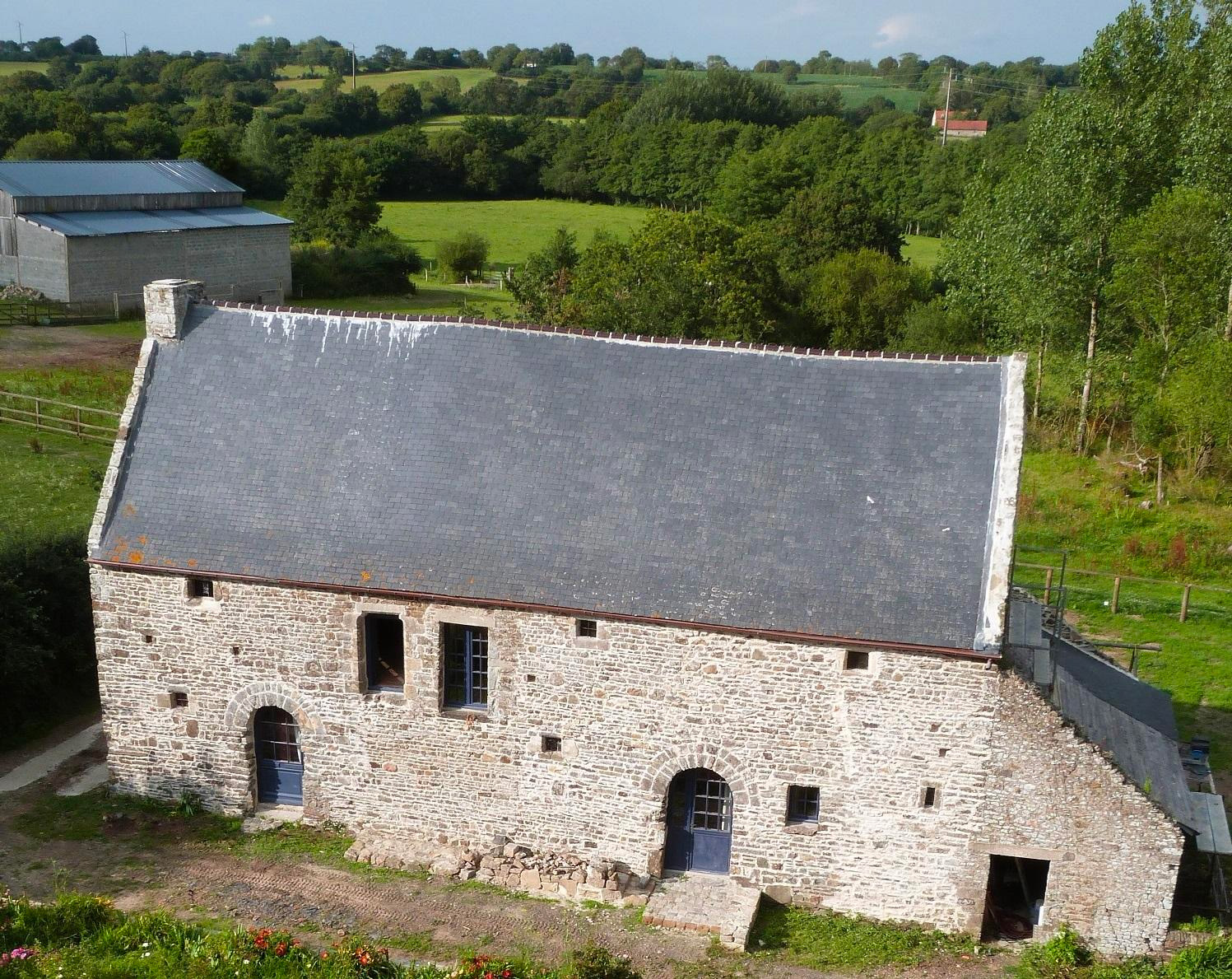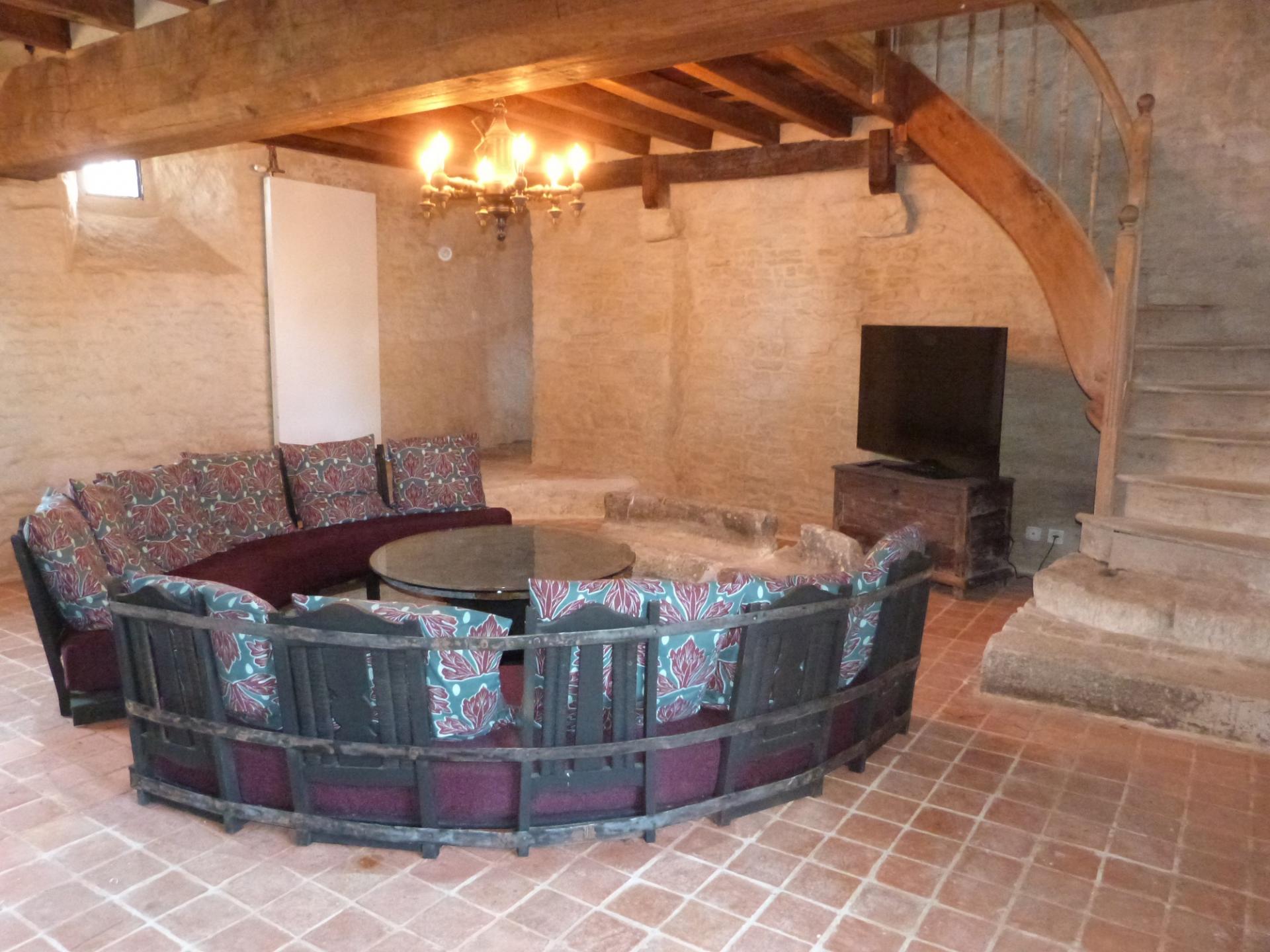 Au 1er étage, une pièce de 25 m2 est équipée d’un coin cuisine, d’une salle de bains aménagée dans l’ancienne tourelle de latrines. Il y a aussi un espace extérieur confortable sur le palier du vieil escalier droit à l’avant du bâtiment.