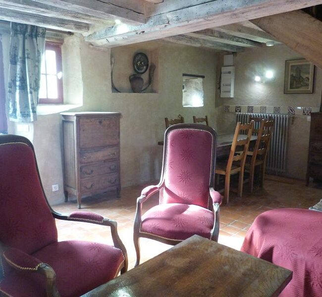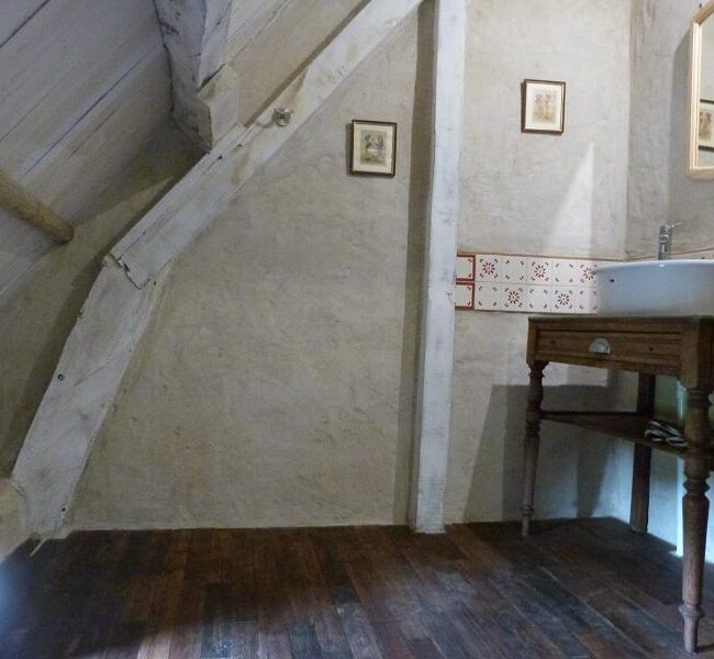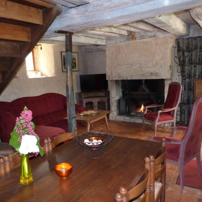 Parquet, tomette, enduits de chaux et poutres anciennes vous donneront, autour de la grande cheminée, toute l’authenticité des vieilles demeures du Cotentin.
