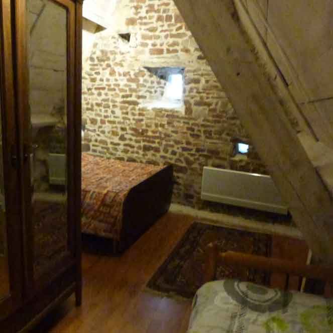 Au second étage, sous les toits, vous trouverez une chambre double avec un lit enfant.